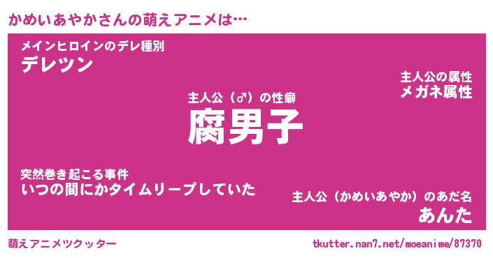 | 男性向けラノベタイトル風あだ名 | 『カメイアヤカアートオンライン』 |