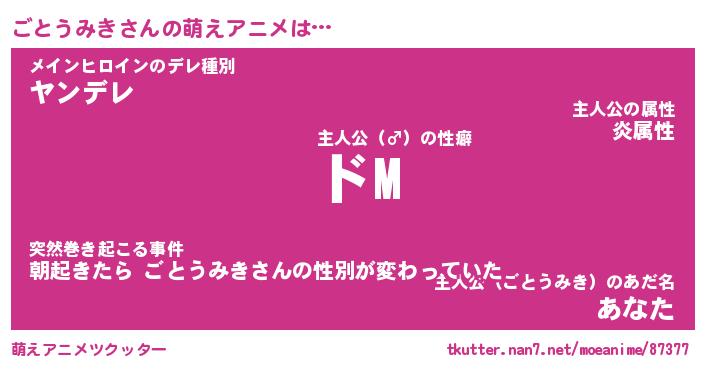 | 女子向けラノベタイトル風あだ名 | 『(仮)ごとうみきのやんごとなき事情』 |