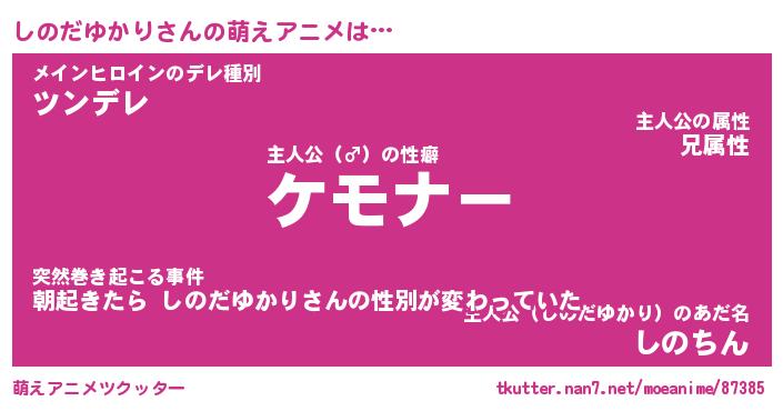 | ヒーロー風カッコイイあだ名 | 『スーパーシノダユカリ』『銀牙騎士シノ』 |