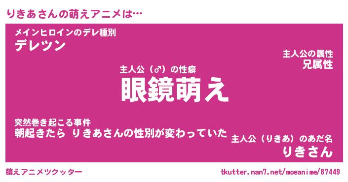 | 男性向けラノベタイトル風あだ名 | 『りきあの憂鬱』 |