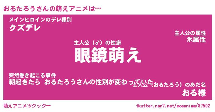 | 男性向けラノベタイトル風あだ名 | 『おるたろうの憂鬱』 |