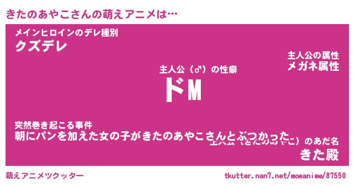 | 女子向けラノベタイトル風あだ名 | 『(仮)きたのあやこのやんごとなき事情』 |