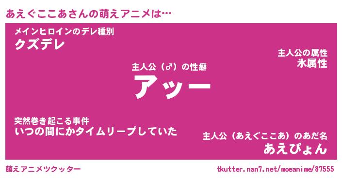 | 伝説のあだ名 | 『封印されしスナイパーあえぐここあ』 |