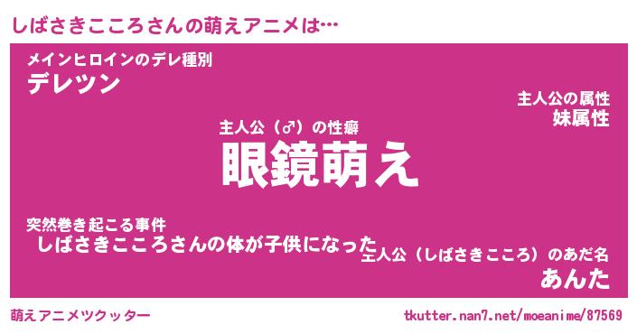 | 男性向けラノベタイトル風あだ名 | 『しばさきこころの憂鬱』 |