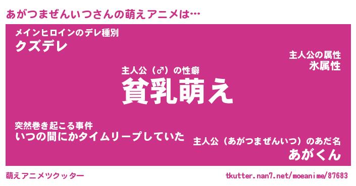 | 男性向けラノベタイトル風あだ名 | 『あがつまぜんいつの憂鬱』 |