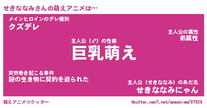 | 男性向けラノベタイトル風あだ名 | 『せきななみの憂鬱』 |