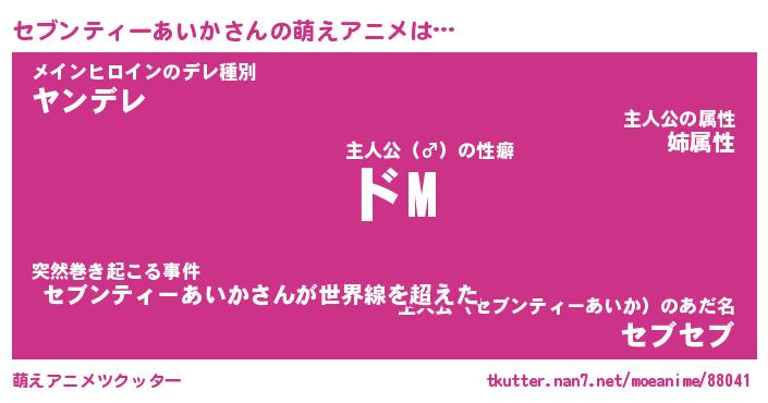 | 女子向けラノベタイトル風あだ名 | 『(仮)セブンティーあいかのやんごとなき事情』 |
