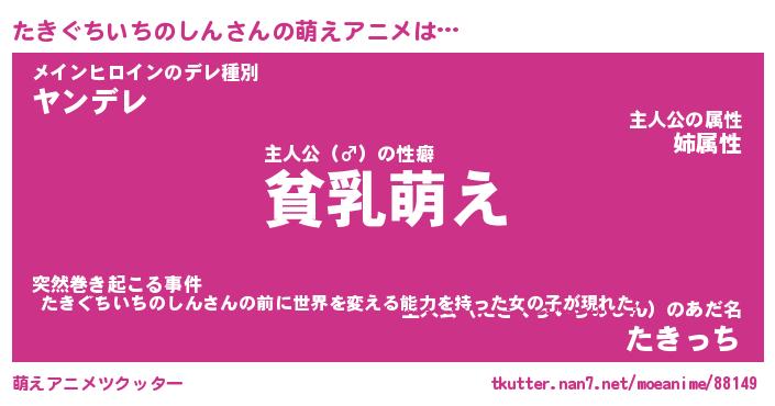 | 男性向けラノベタイトル風あだ名 | 『たきぐちいちのしんの憂鬱』 |