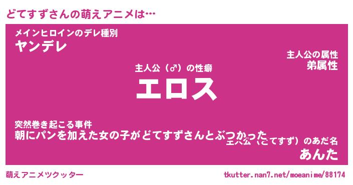 | 男性向けラノベタイトル風あだ名 | 『ドテスズアートオンライン』 |