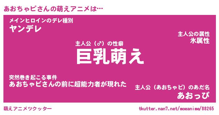 | 男性向けラノベタイトル風あだ名 | 『あおちゃピの憂鬱』 |