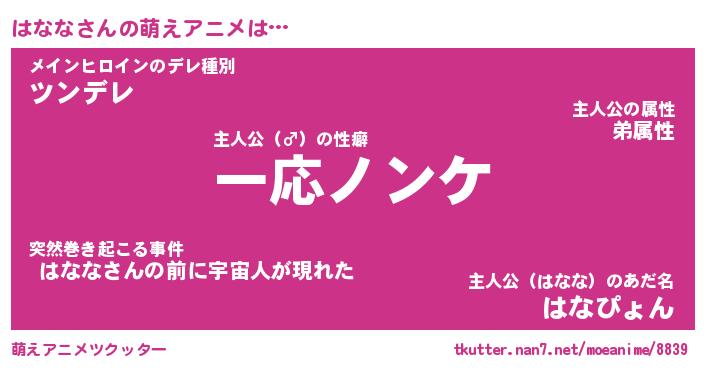 | 男性向けラノベタイトル風あだ名 | 『ハナナアートオンライン』 |