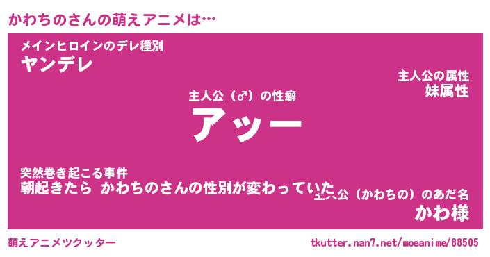 | 女子向けラノベタイトル風あだ名 | 『誰かこのかわちのを説明してください! ~契約から始まるウェディング~』 |