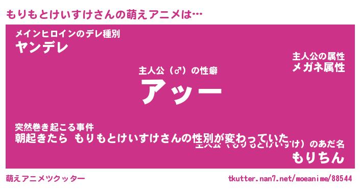 | 肩書あだ名 | 『もりもとけいすけ御曹司』 |