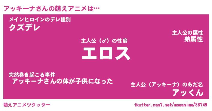 | 男性向けラノベタイトル風あだ名 | 『アッキーナアートオンライン』 |