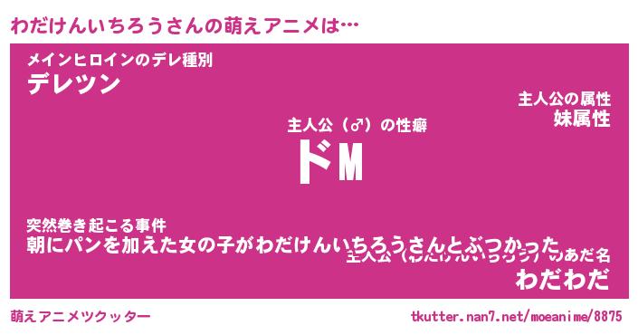 | 男性向けラノベタイトル風あだ名 | 『わだけんいちろうの憂鬱』 |
