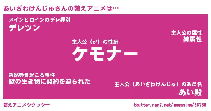 | 女子向けラノベタイトル風あだ名 | 『誰かこのあいざわけんじゅを説明してください! ~契約から始まるウェディング~』 |