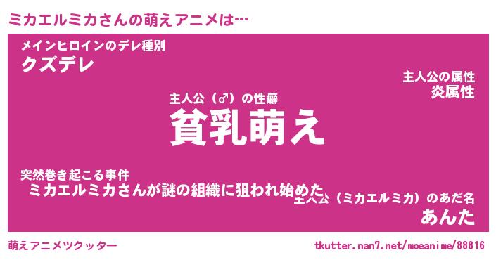 | ヒーロー風カッコイイあだ名 | 『スーパーミカエルミカ』『天弓騎士ミカ』 |