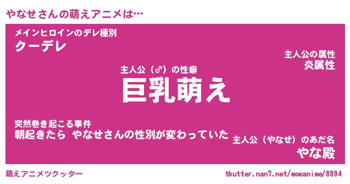 | 男性向けラノベタイトル風あだ名 | 『やなせの憂鬱』 |