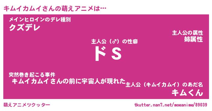 | 男性向けラノベタイトル風あだ名 | 『キムイカムイの憂鬱』 |