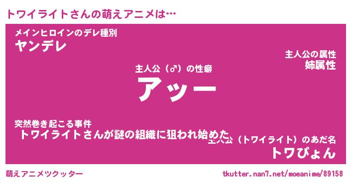 | ヒーロー風カッコイイあだ名 | 『スーパートワイライト』『魔戒騎士トワ』 |