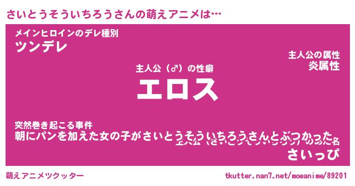 | 女子向けラノベタイトル風あだ名 | 『誰かこのさいとうそういちろうを説明してください! ~契約から始まるウェディング~』 |