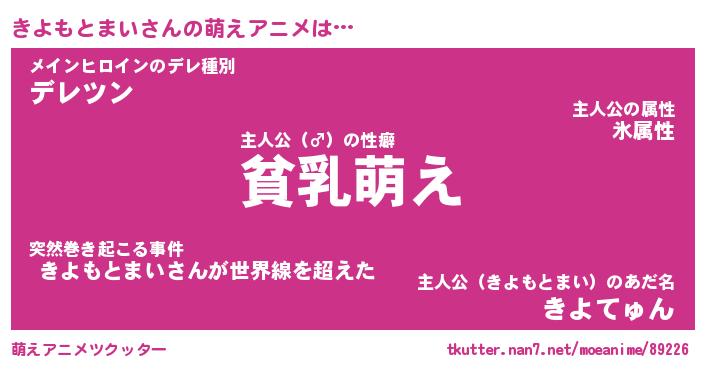 | 男性向けラノベタイトル風あだ名 | 『きよもとまいの憂鬱』 |