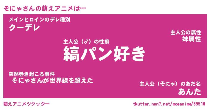 | 女子向けラノベタイトル風あだ名 | 『(仮)そにゃのやんごとなき事情』 |