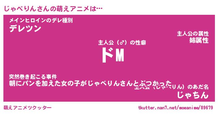 | 男性向けラノベタイトル風あだ名 | 『じゃべりんの憂鬱』 |