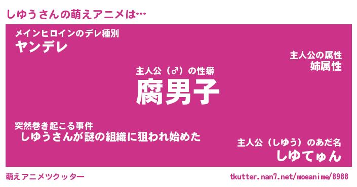 | ファンタジー風あだ名 | 『シユフェル』『エターナルシユウー』 |