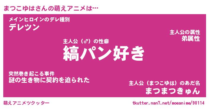 | 男性向けラノベタイトル風あだ名 | 『まつこゆはの憂鬱』 |