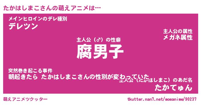 | 男性向けラノベタイトル風あだ名 | 『タカハシマコアートオンライン』 |