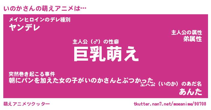 | 男性向けラノベタイトル風あだ名 | 『いのかの憂鬱』 |