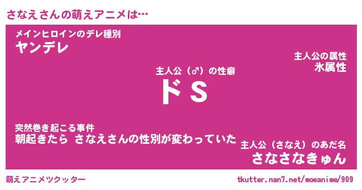 | 男性向けラノベタイトル風あだ名 | 『さなえの憂鬱』 |