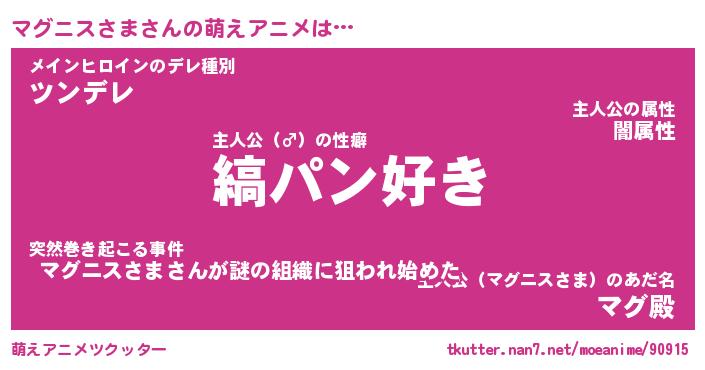 | 男性向けラノベタイトル風あだ名 | 『マグニスさまの憂鬱』 |