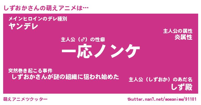 | ヒーロー風カッコイイあだ名 | 『スーパーシズオカ』『幻影騎士シズ』 |