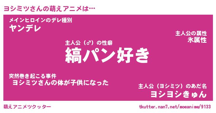 | 2回繰り返すあだ名 | 『ヨシヨシ』『ヨヨシシ』『ぬれぬれ』 |