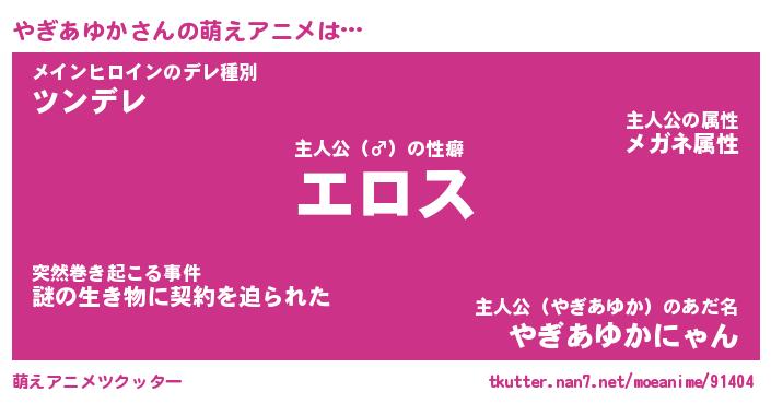 | 女子向けラノベタイトル風あだ名 | 『誰かこのやぎあゆかを説明してください! ~契約から始まるウェディング~』 |