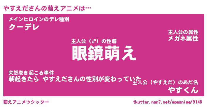 | 男性向けラノベタイトル風あだ名 | 『やすえだの憂鬱』 |