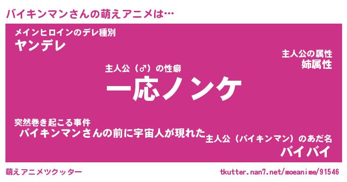 | 男性向けラノベタイトル風あだ名 | 『バイキンマンアートオンライン』 |