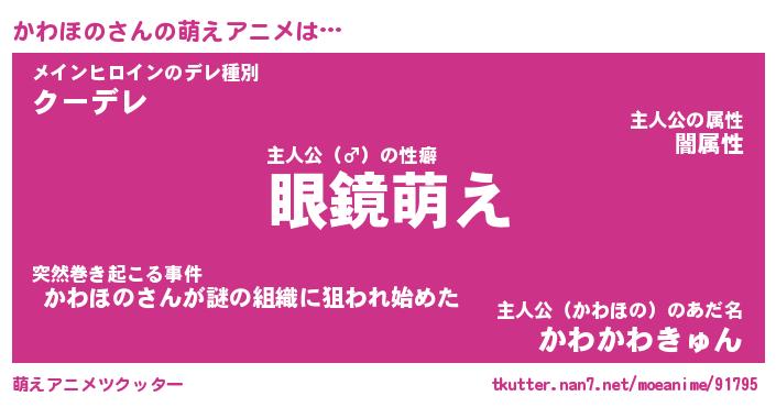 | 男性向けラノベタイトル風あだ名 | 『かわほのの憂鬱』 |