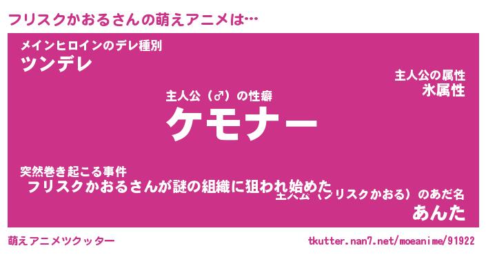 | 女子向けラノベタイトル風あだ名 | 『誰かこのフリスクかおるを説明してください! ~契約から始まるウェディング~』 |