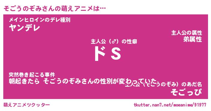 | 女子向けラノベタイトル風あだ名 | 『(仮)そごうのぞみのやんごとなき事情』 |