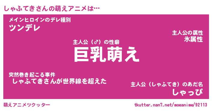 | 男性向けラノベタイトル風あだ名 | 『しゃふてきの憂鬱』 |