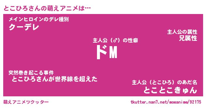 | 男性向けラノベタイトル風あだ名 | 『とこひろの憂鬱』 |