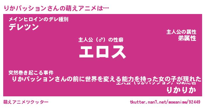 | 女子向けラノベタイトル風あだ名 | 『誰かこのりかパッションを説明してください! ~契約から始まるウェディング~』 |