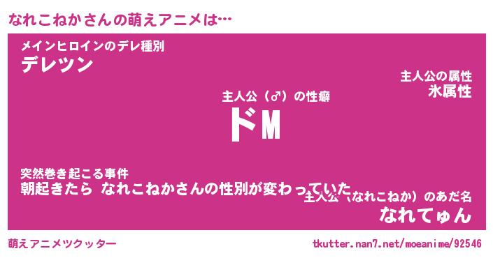 | 男性向けラノベタイトル風あだ名 | 『なれこねかの憂鬱』 |
