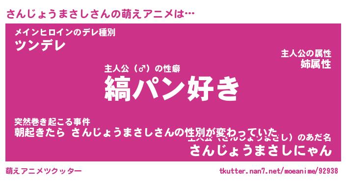 | 男性向けラノベタイトル風あだ名 | 『さんじょうまさしの憂鬱』 |