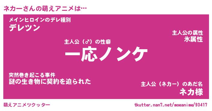 | 女子向けラノベタイトル風あだ名 | 『誰かこのネカーを説明してください! ~契約から始まるウェディング~』 |