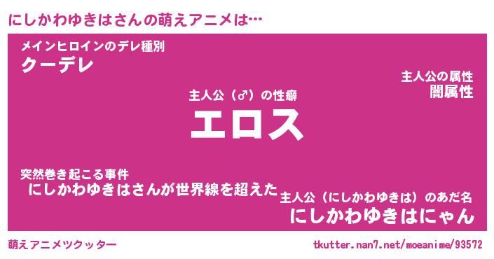 | 女子向けラノベタイトル風あだ名 | 『誰かこのにしかわゆきはを説明してください! ~契約から始まるウェディング~』 |