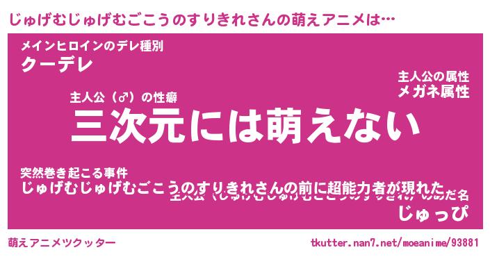 | 肩書あだ名 | 『じゅげむじゅげむごこうのすりきれ御曹司』 |